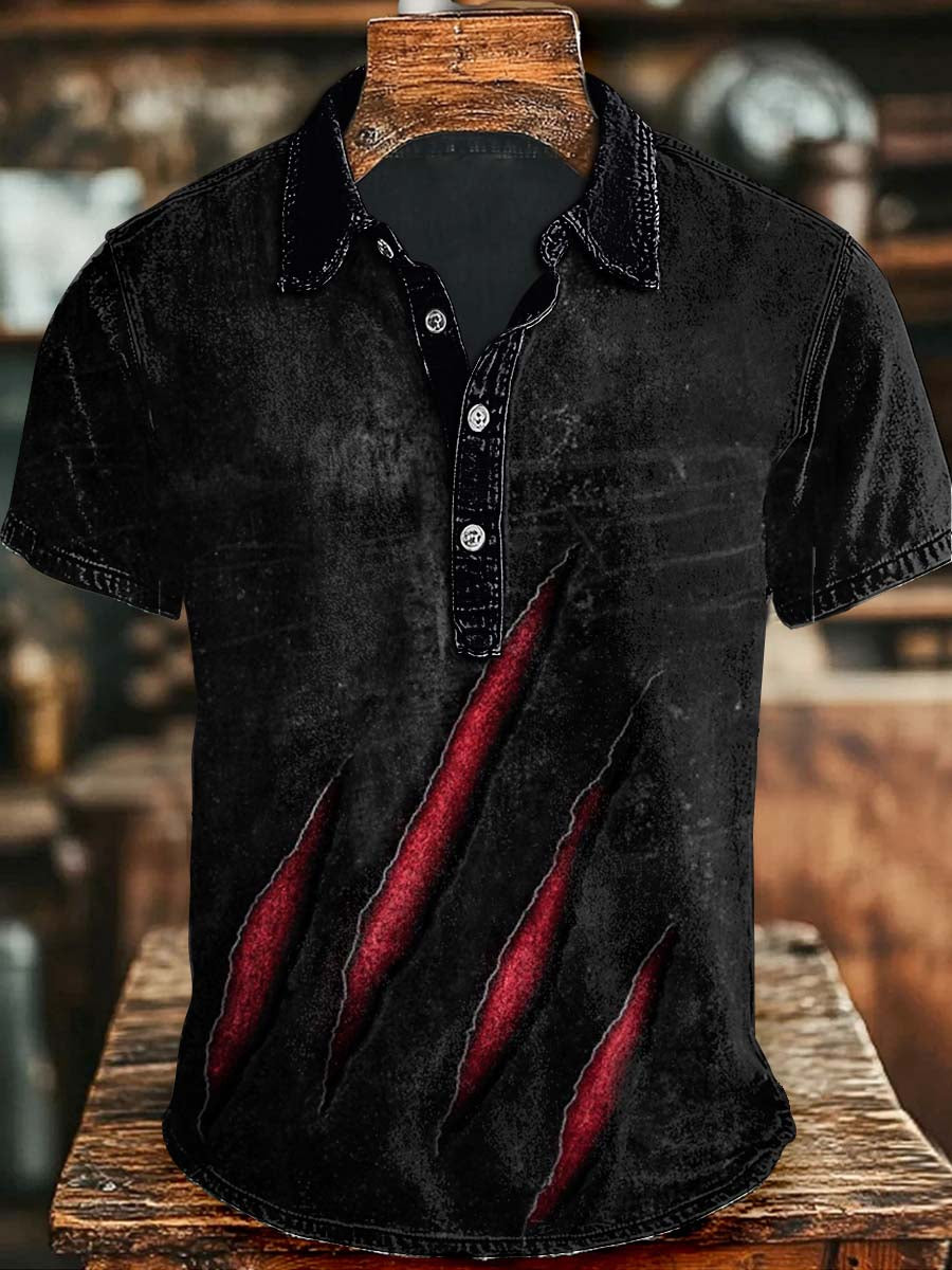 Vintage Abstract Art Wave Print Casaul Short Sleeve Polo Shirt Spooky Gifts For Brother