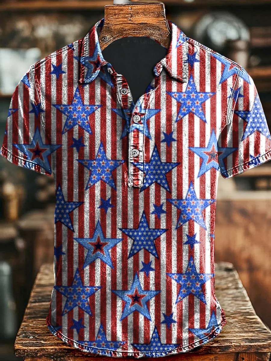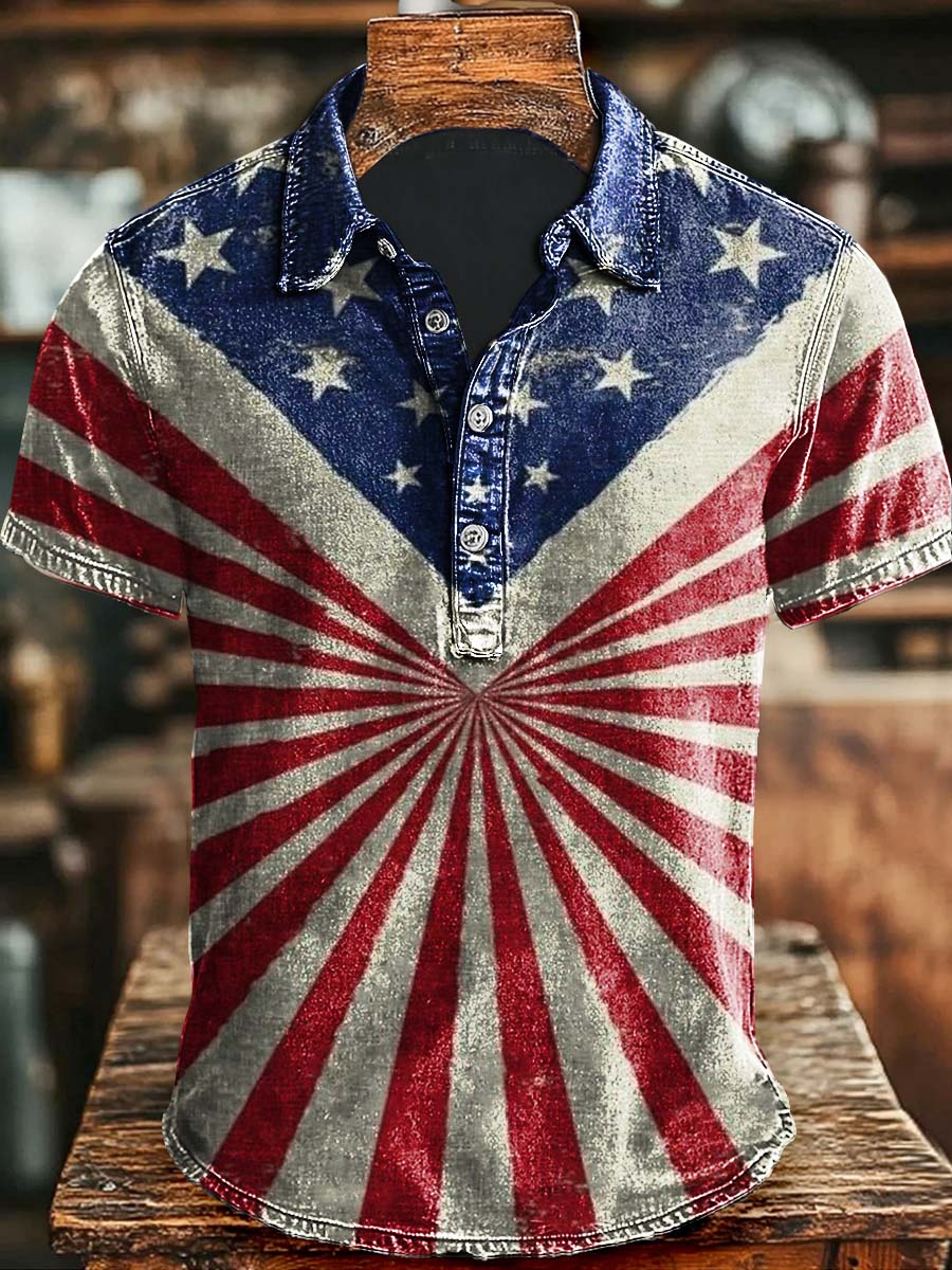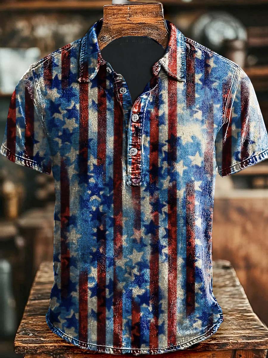 Vintage Independence Day Patriotic Flag Print Casual Short Sleeve Polo Shirt Halloween Apparel Present Ideas