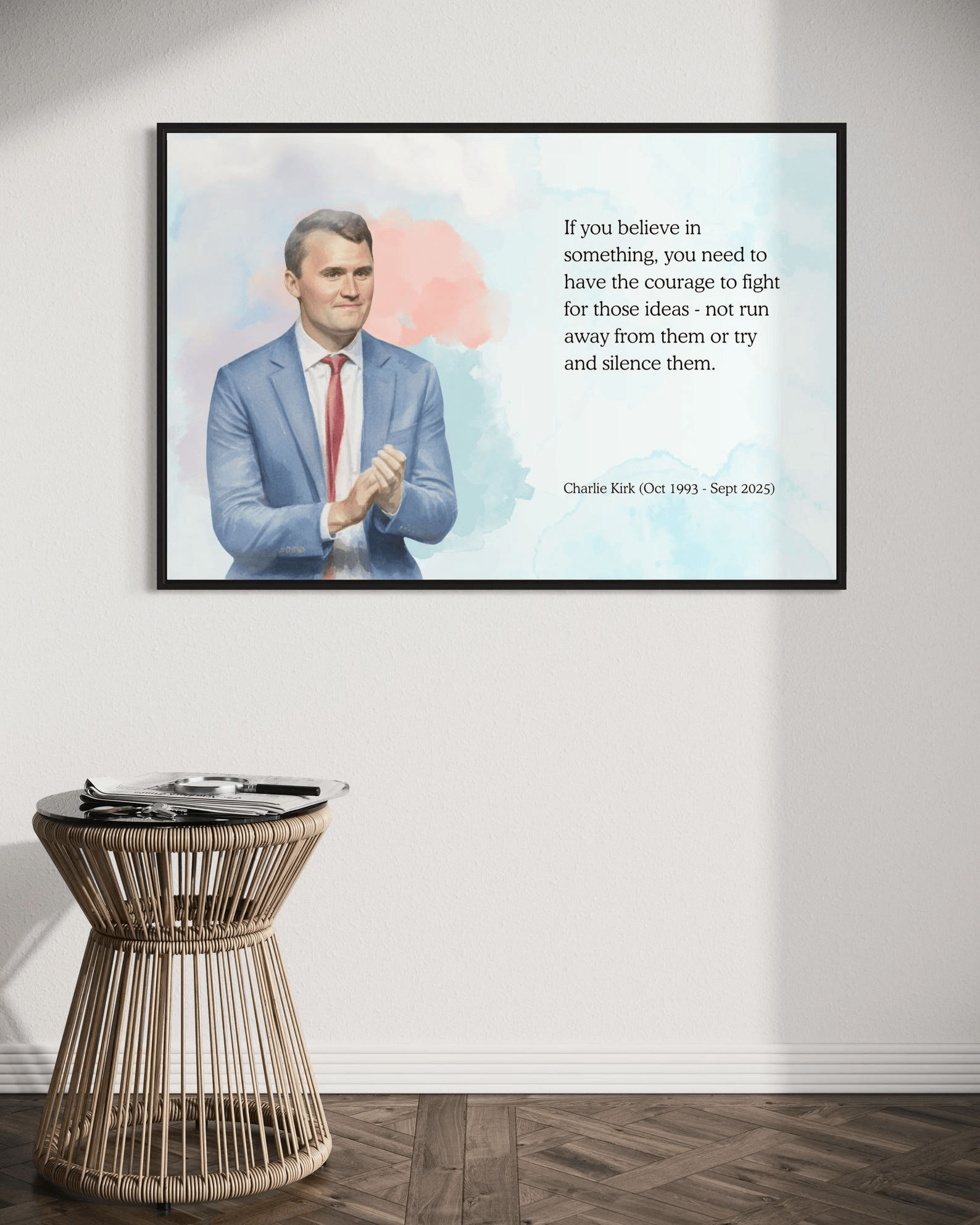 Charlie Kirk Watercolor Portrait Poster Turning Point USA Tribute.