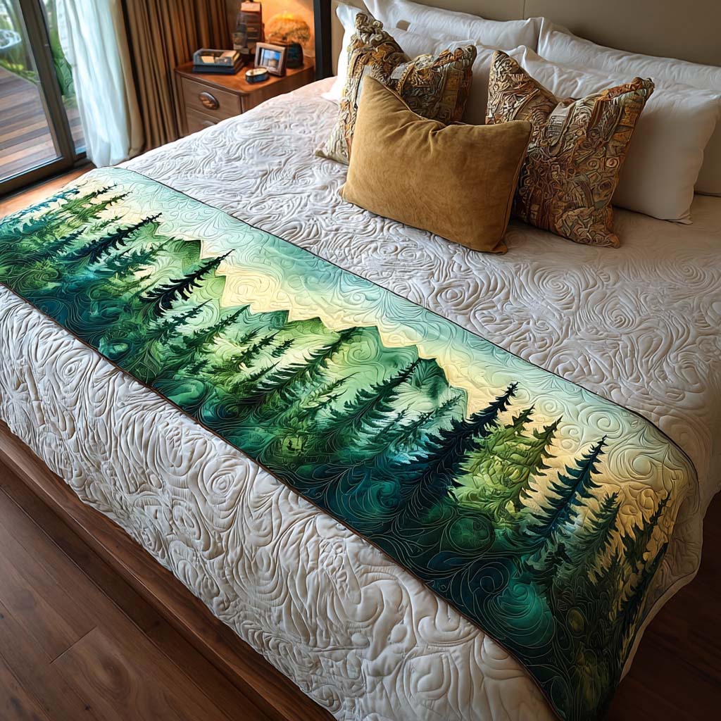Birch Forest Path Quilted Bed Runner Bed Room Decoration Presents For Wildlife Lovers.