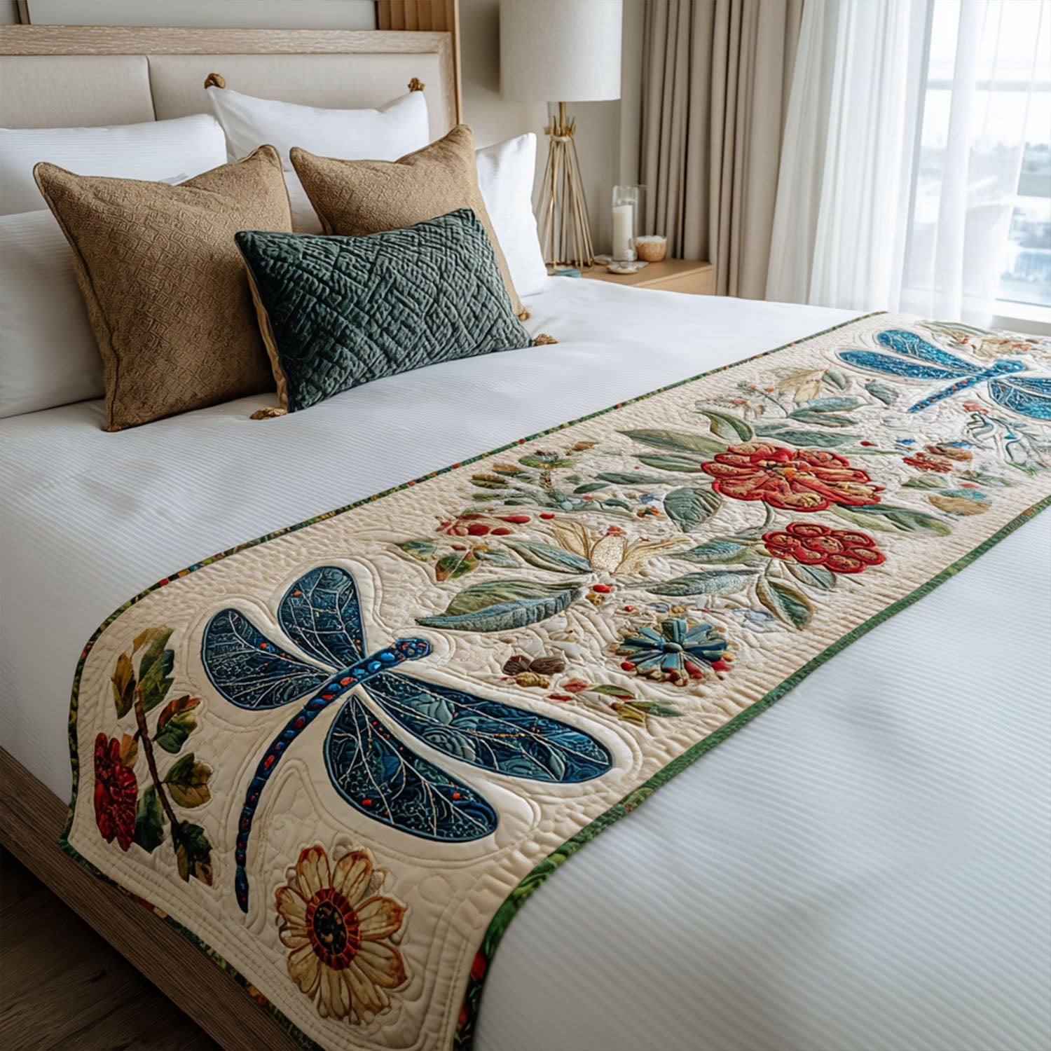 Winged Serenity Quilted Bed Runner Bedroom Decor Ideas Gifts For Dragonfly Lovers.