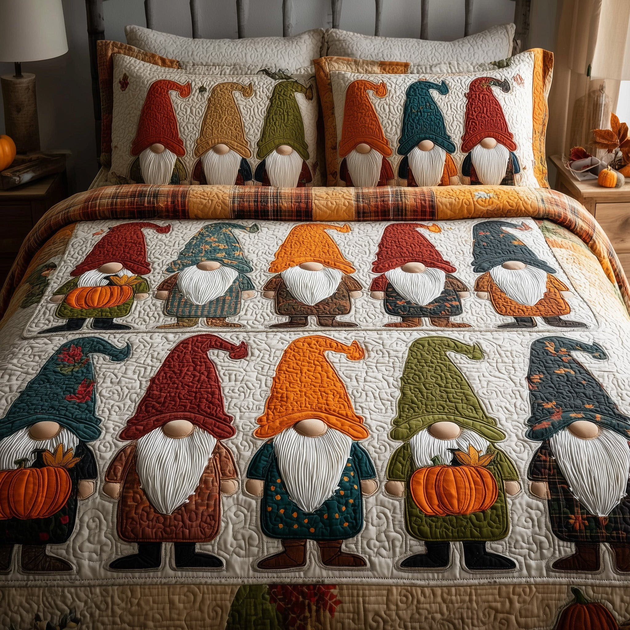 Autumn Cabin Quilted Bedding Set Duvet Cover Bedspread Farmhouse Autumn Gifts Items.