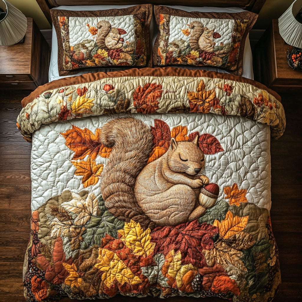 Bear in Autumn Woods Quilted Bedding Set Bedspread Set Cute Bear Themed Gifts.
