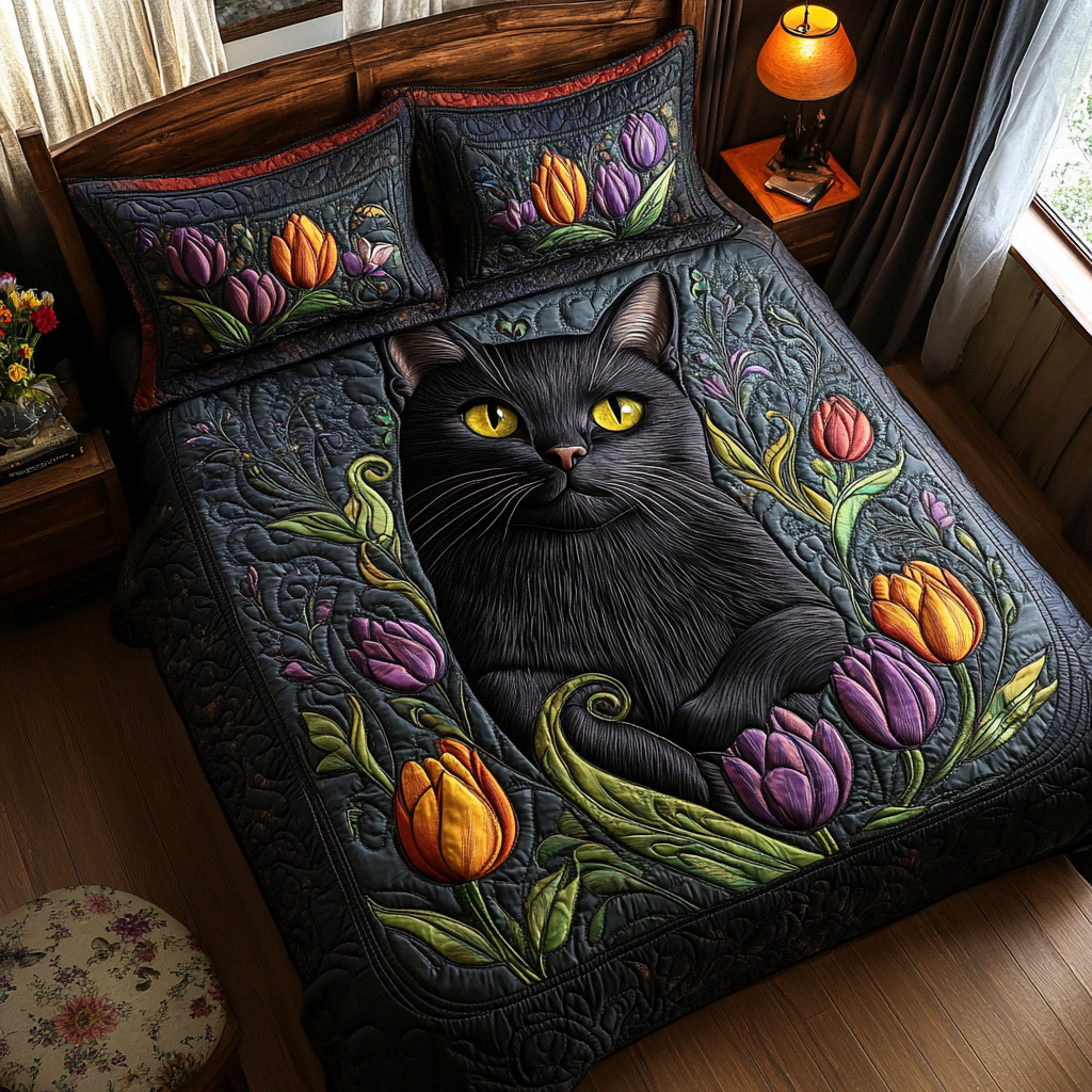Black Cat Dreams Quilted Bedding Set Bedroom Decor Christmas Gifts For Cat Lovers.