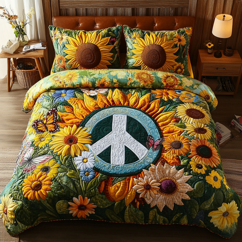 Bloom Bright Quilted Bedding Set Cute Bedroom Decor Sunflower Gifts For Friends