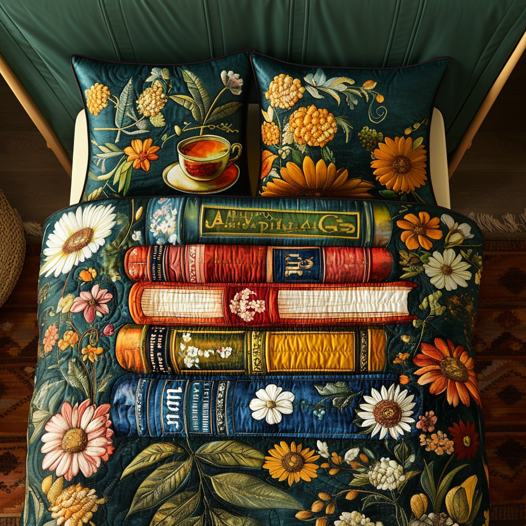 Blooming Book Quilted Bedding Set Best Comforter Sets Best Unique Book Gifts.