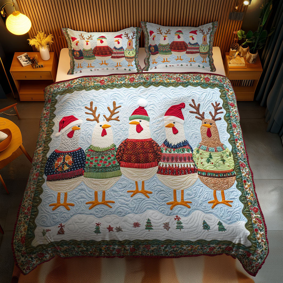 Blooming Gnome Holiday Xmas Quilted Bedding Set Unique Christmas Gift For Girlfriend