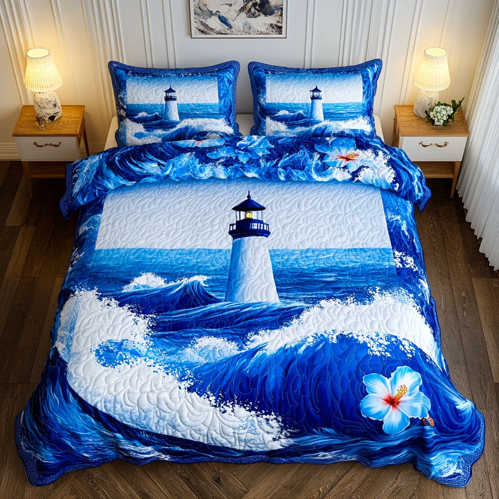 Coastal Flame Quilted Bedding Set Cute Room Decor Great Lighthouse Gifts