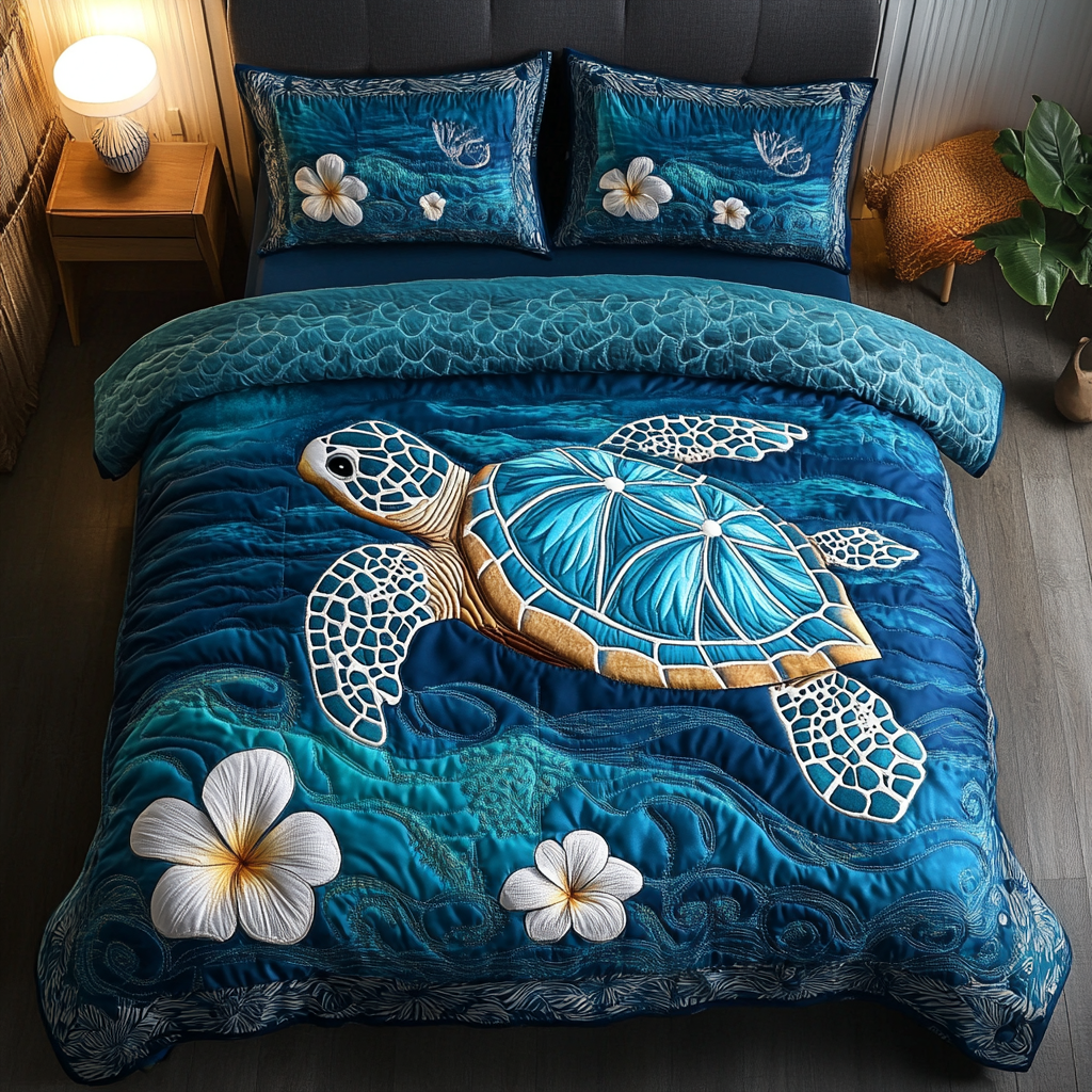 Coastal Turtle Quilted Bedding Set Cool Bedroom Decor Gifts That Help Sea Turtles.