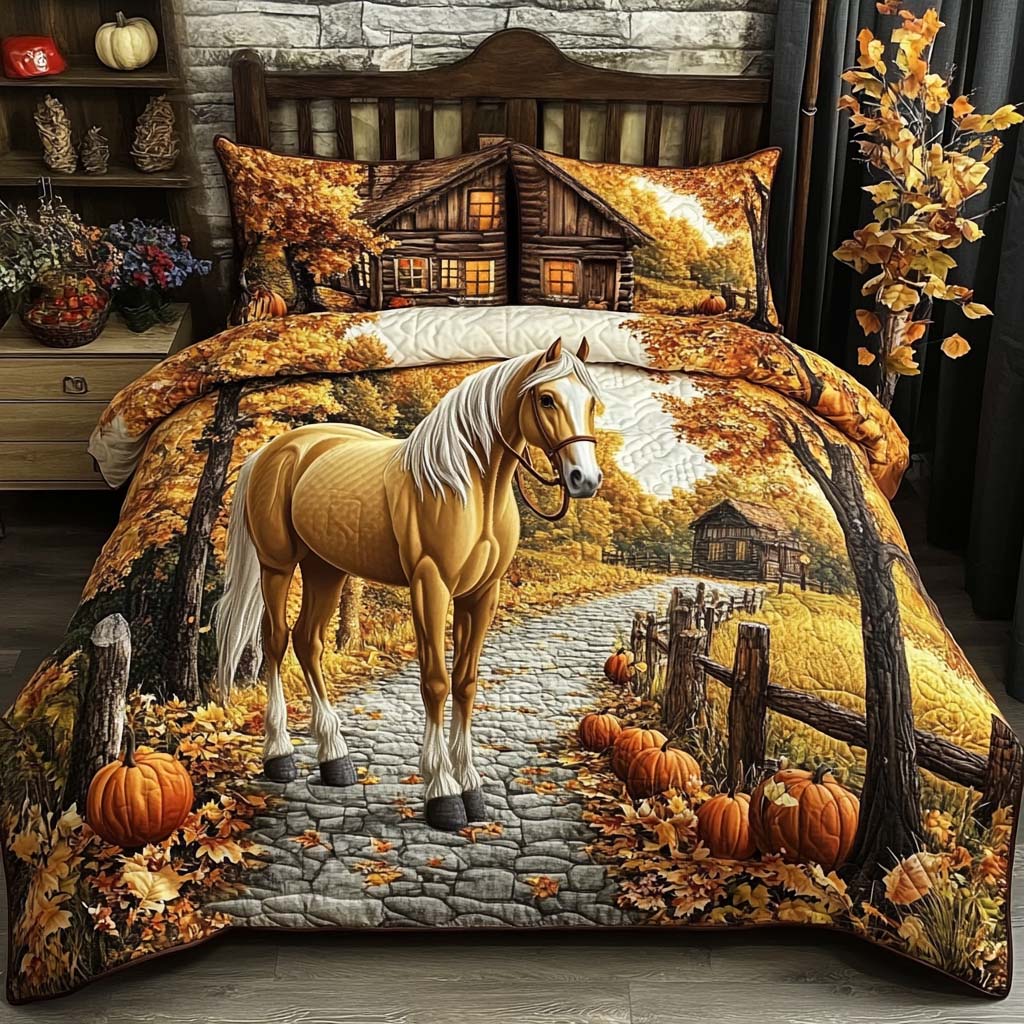 Country Majesty Quilted Bedding Set Autumn Bed Sheet Set Gift Ideas For Horse Lovers.
