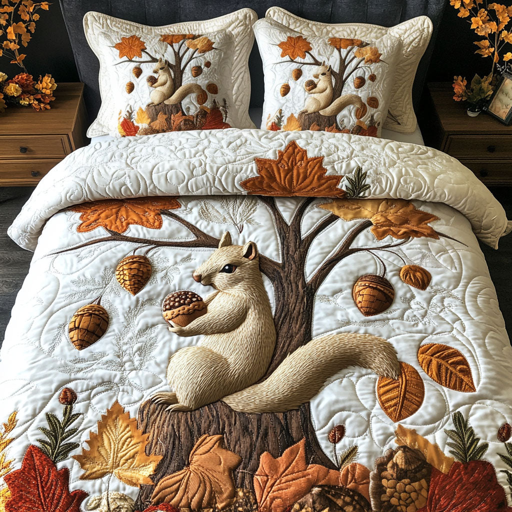 Cozy Fall Squirrel Quilted Bedding Set Best Bed Sheet Set Cozy Fall Gift Ideas.
