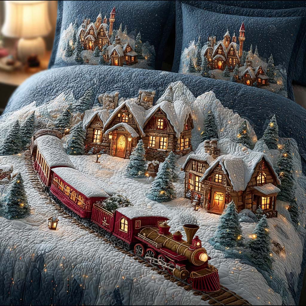 Cozy Pine Dreams Quilted Bedding Set Queen Size Comforter Winter Gift For Mom