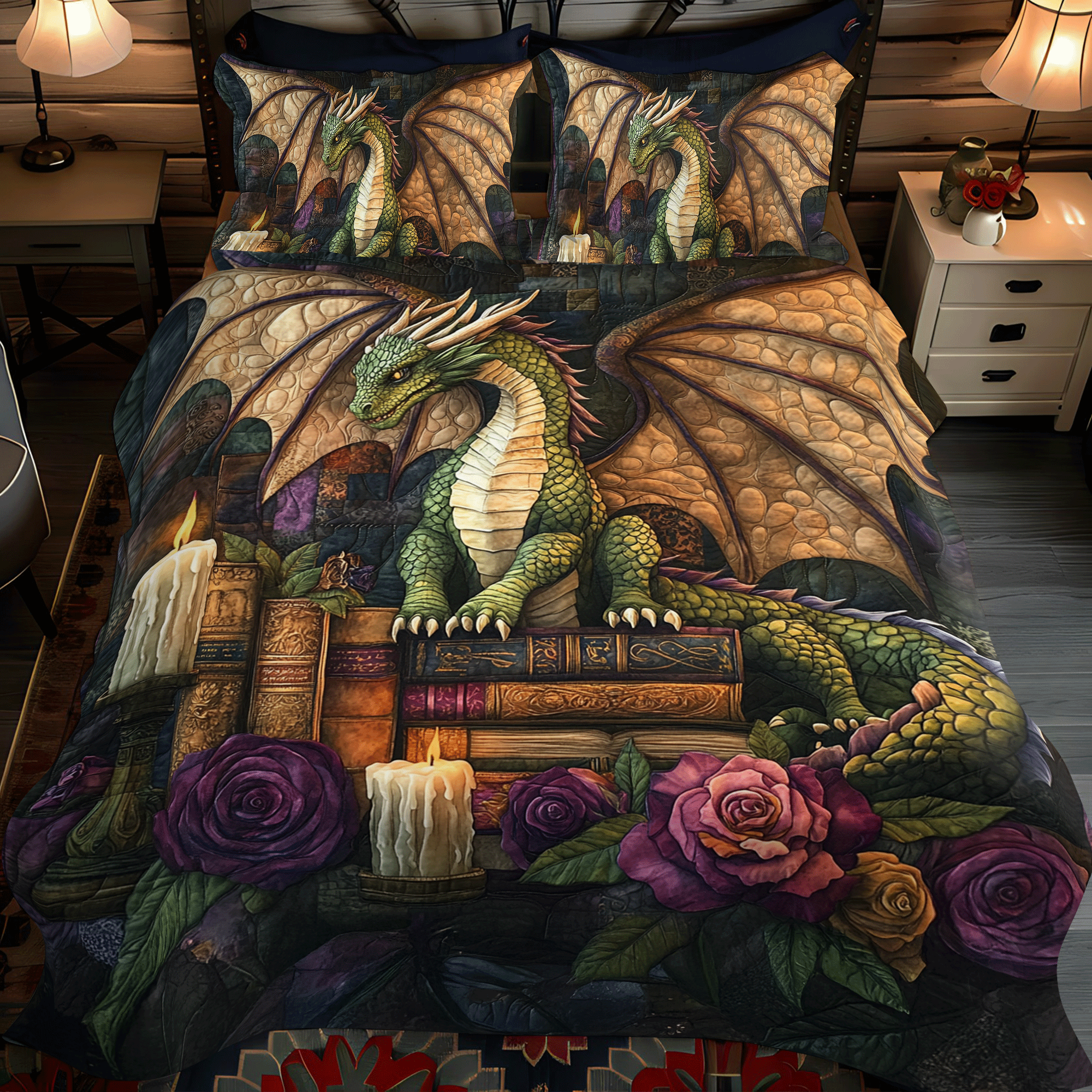 Dragon Quilted Bedding Set Bed Room Decoration Dragon Presents.