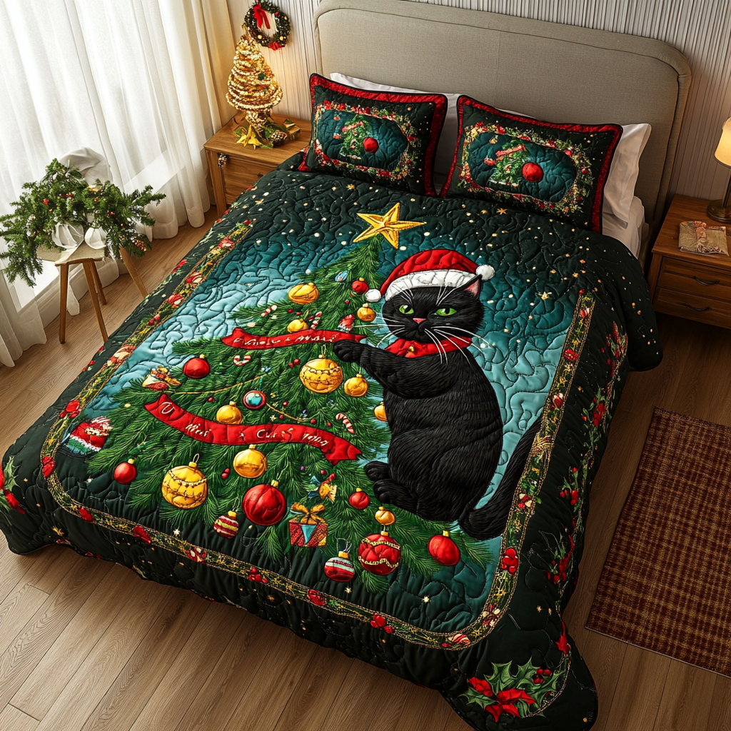 Evergreen Magic Quilted Bedding Set Xmas Holiday Duvet Cover Set Snowman Themed Gifts.