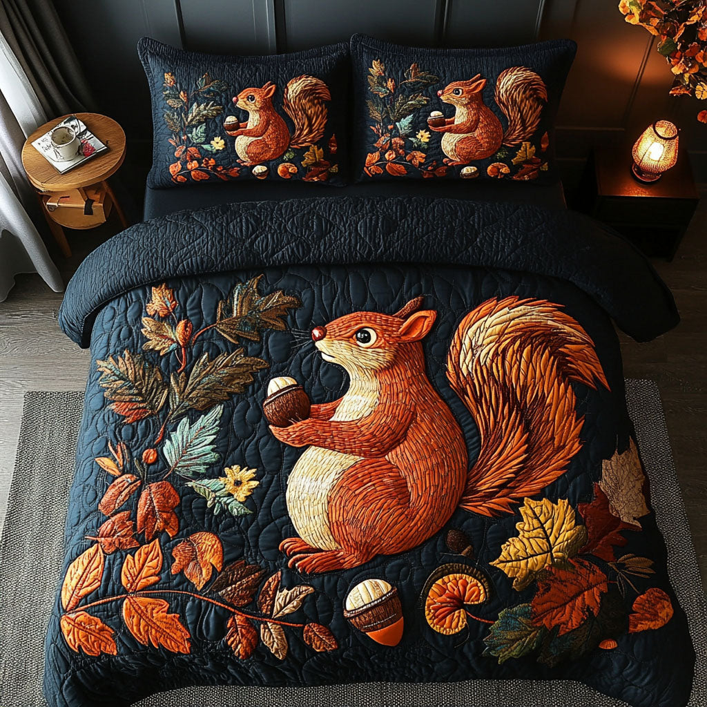 Fall Squirrel Trails Quilted Bedding Set Bed Room Decoration Cozy Fall Gift Ideas.