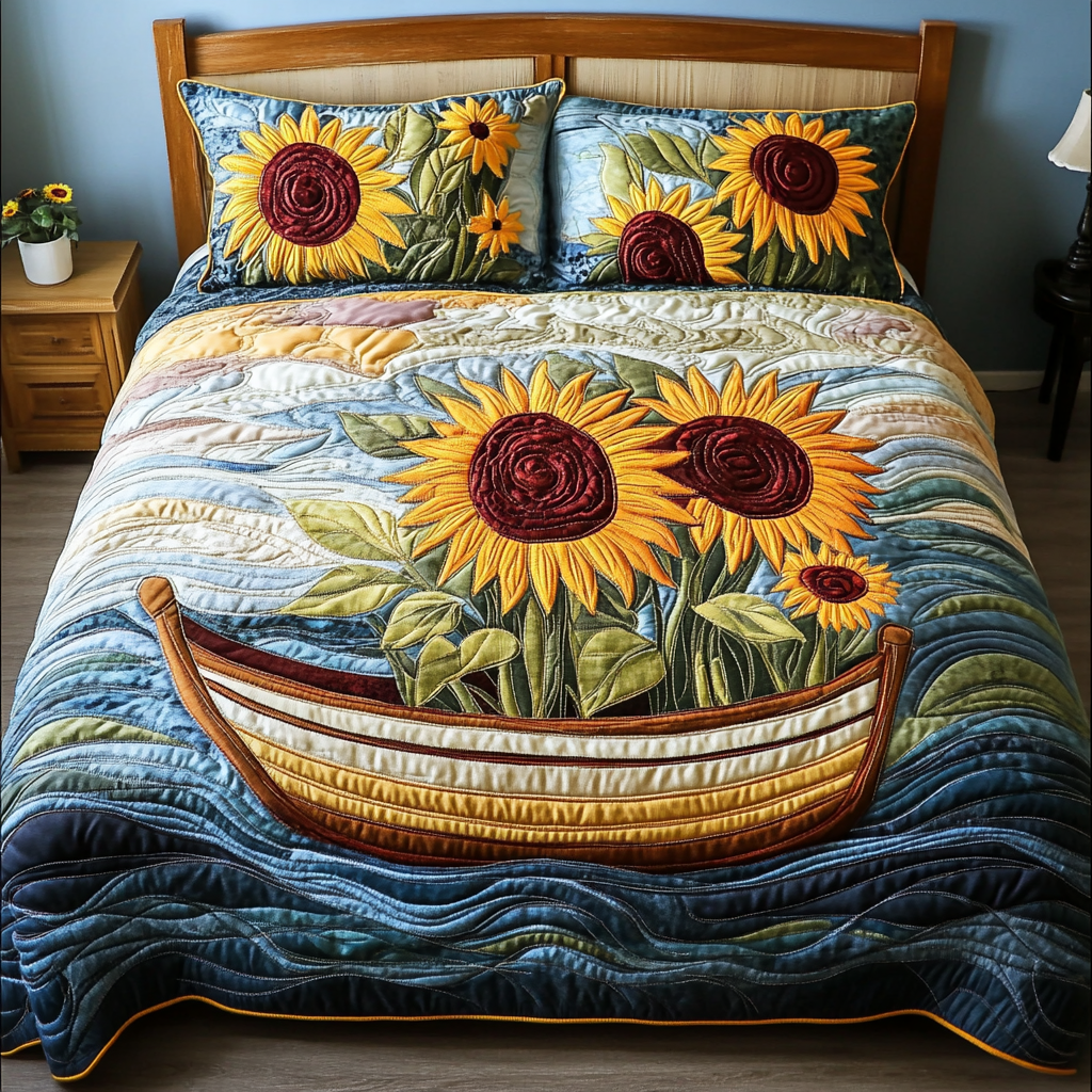 Field of Gold Quilted Bedding Set Best Comforter Sets Sunflower Birthday Gifts.