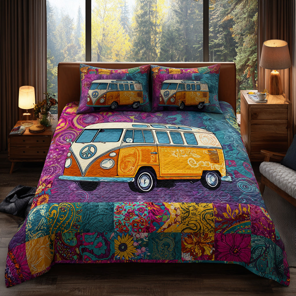 Freedom Wheels Quilted Bedding Set Christmas Bedding Duvet Cover Gifts For Old Hippies.