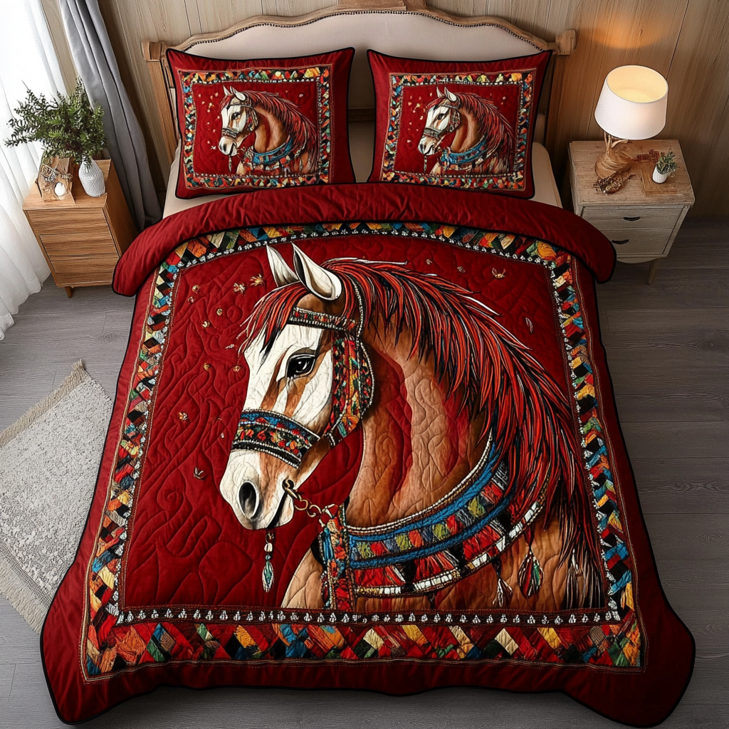 Horse Path Quilted Bedding Set Cute Room Decor Practical Gifts For Horse Owners.