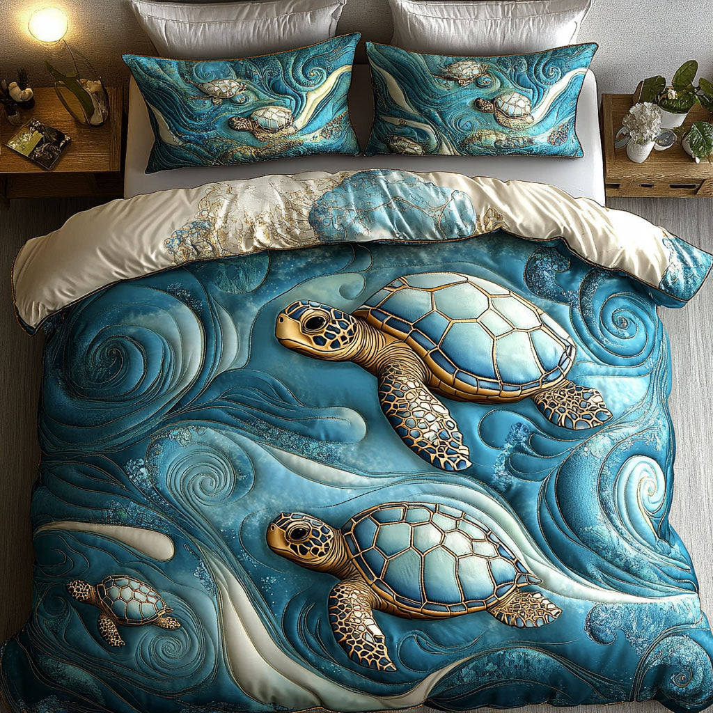 Lagoon Turtle Tides Quilted Bedding Set Bed Decor Sea Turtle Themed Gifts.
