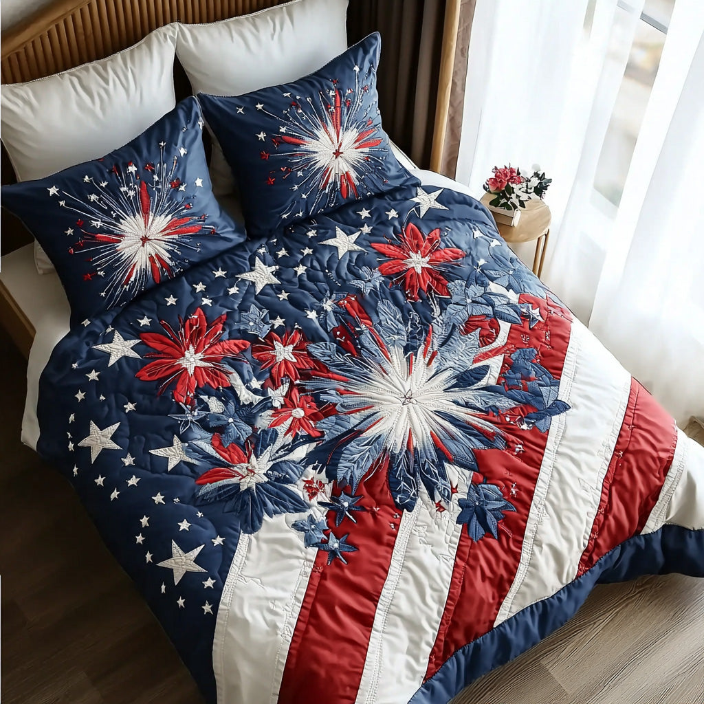 Liberty Bloom Quilted Bedding Set Patriotic Bedroom Decor Christmas Gifts For Wife.