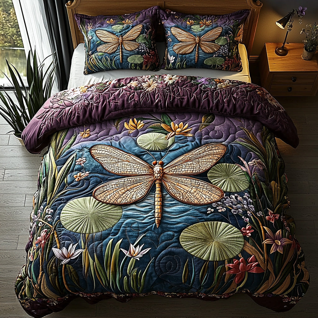 Majestic Dragonfly Quilted Bedding Set Bed Room Decoration Best Dragonfly Presents.