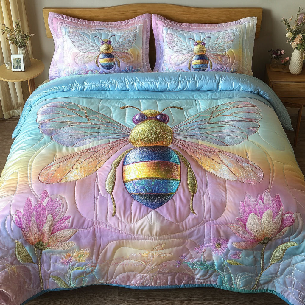 Majestic Pink Bee Quilted Bedding Set Christmas Bedding Sets Best Bee Gifts.
