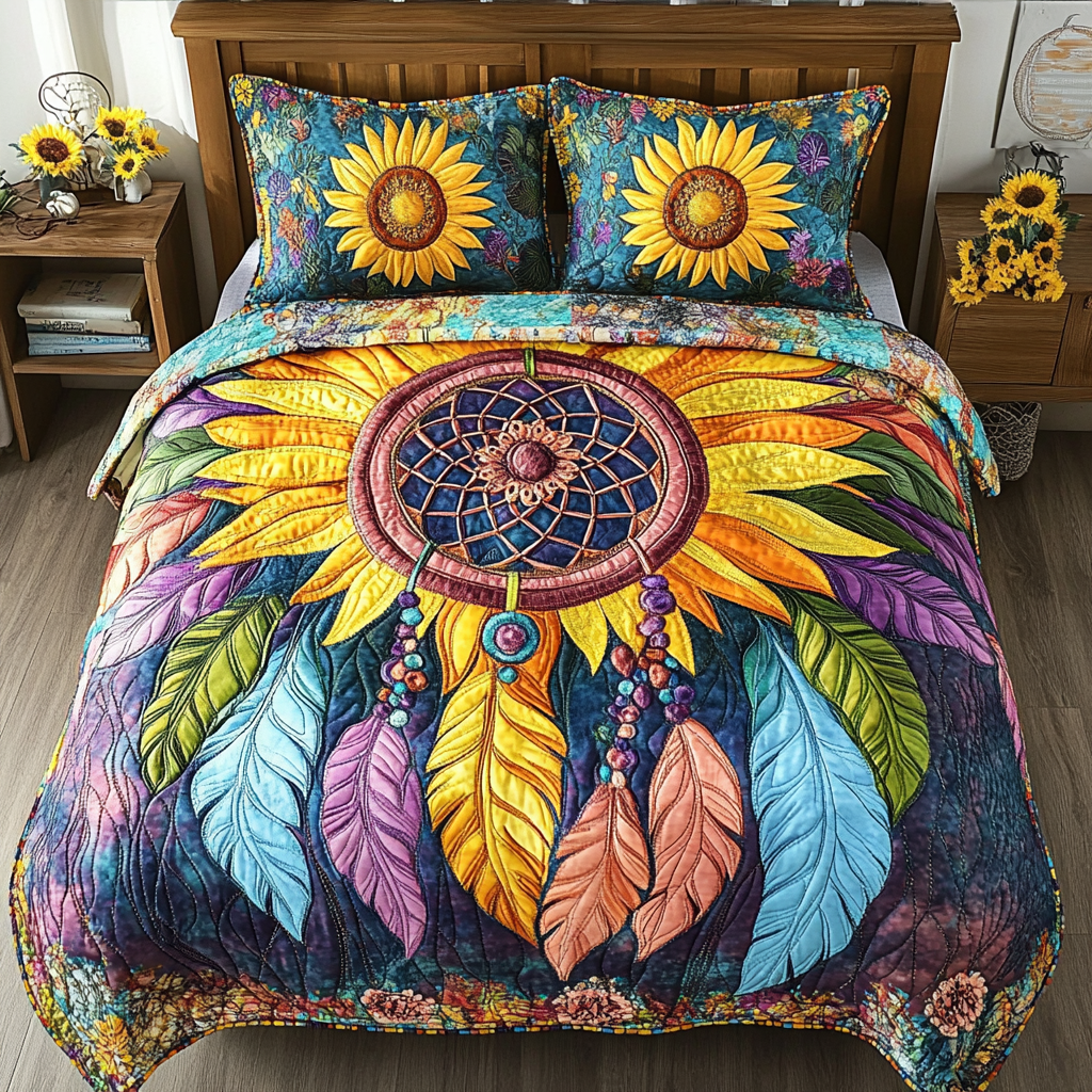 Petal Glow Quilted Bedding Set Holiday Duvet Covers Sunflower Gifts For Her.