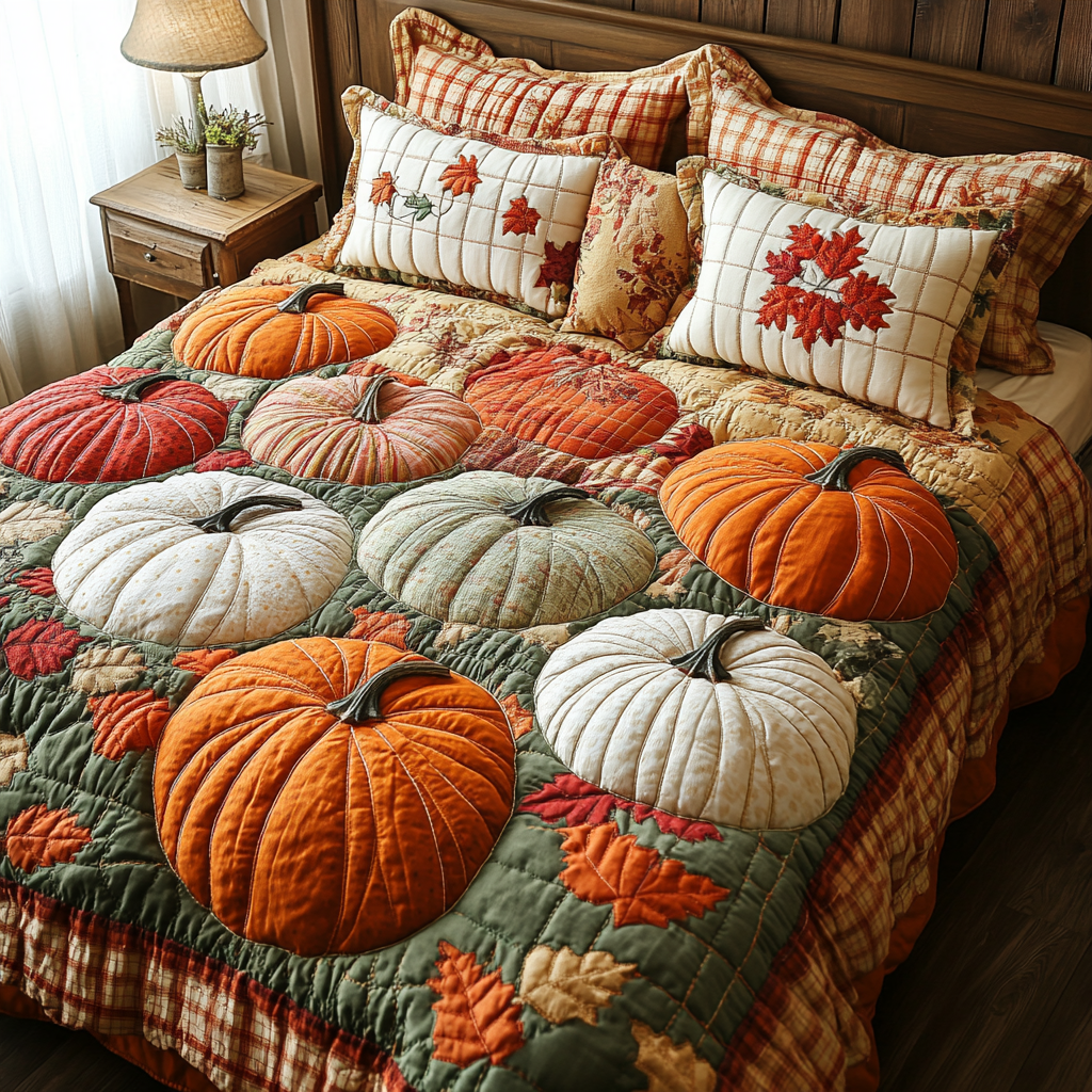 Pumpkin Bliss Quilted Bedding Set Cute Room Decor Gift Ideas For Fall.