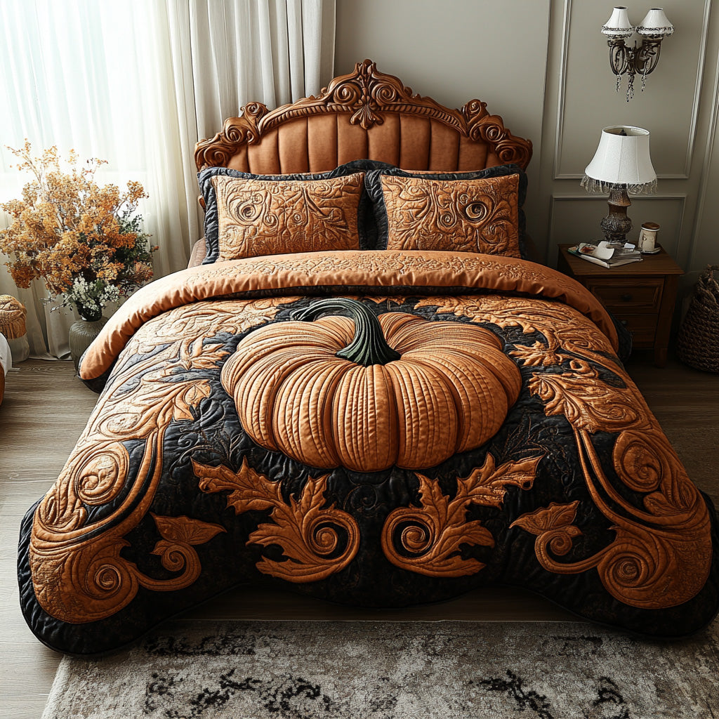 Pumpkin Whispers Quilted Bedding Set Best Bed Sheet Set Autumn Inspired Gifts.