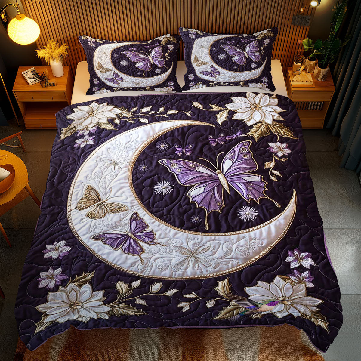 Purrple Butterfly Holiday Xmas Quilted Bedding Set Romantic Christmas Gifts For Newlyweds