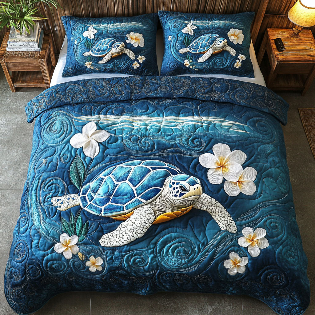Quiet Shell Escape Quilted Bedding Set Holiday Duvet Covers Gifts For People Who Loves Sea Turtle