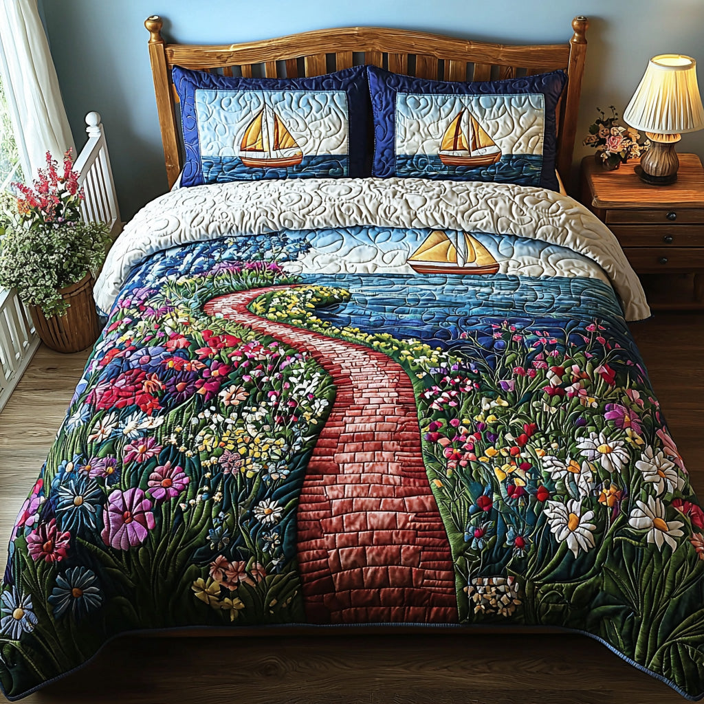 Regatta Glow Quilted Bedding Set Cozy Bedroom Decor Best Gift For A Sailboat Owner.