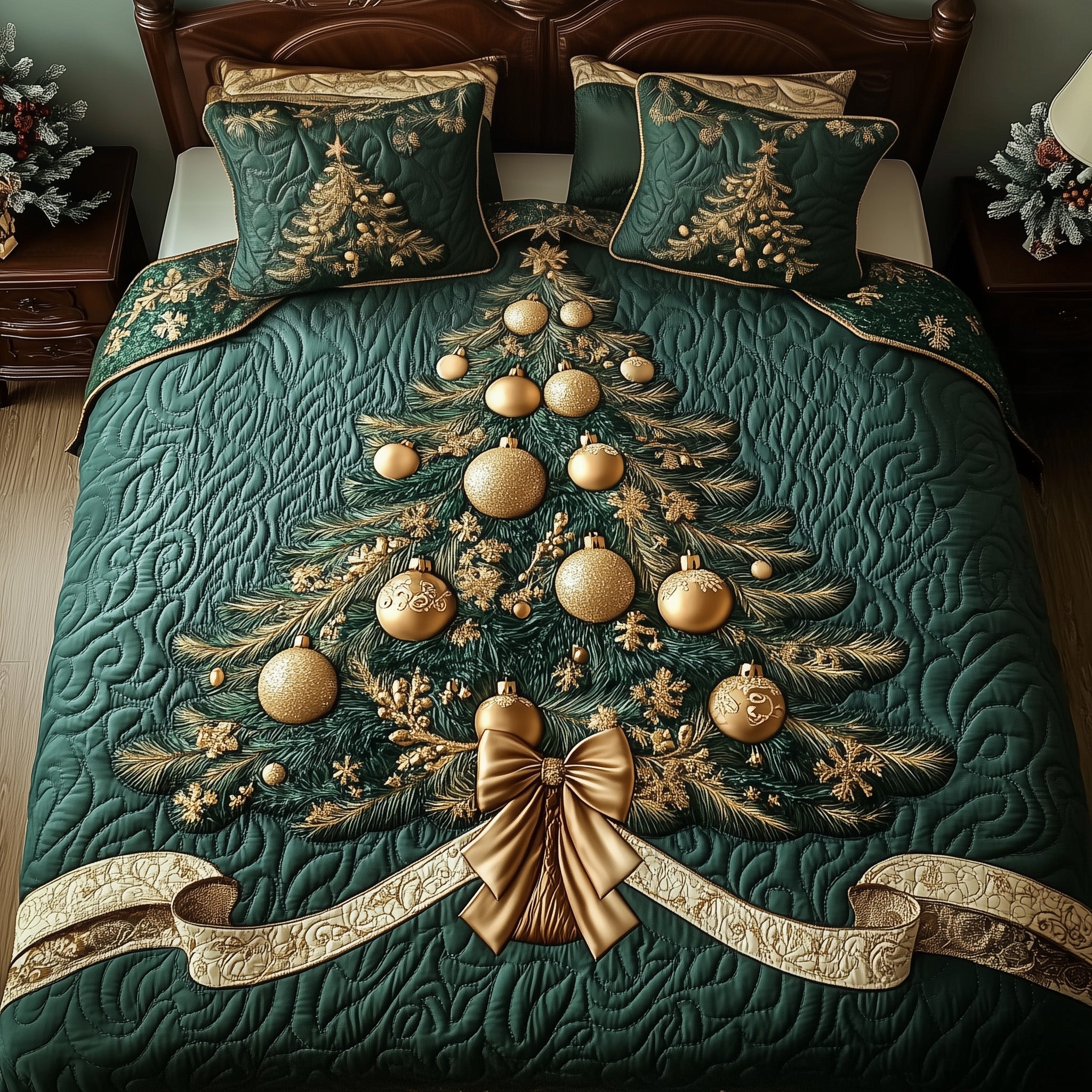 Santa Town Christmas Quilted Bedding Set Duvet Cover Bedspread Cute Xmas Gifts For Lovers.