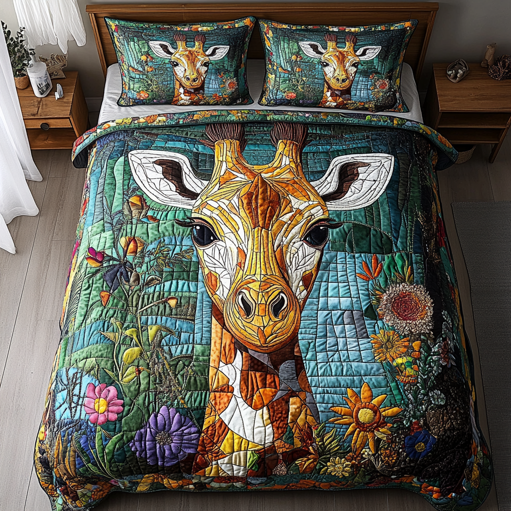 Savanna Wanderer Quilted Bedding Set Best Christmas Duvet Sets Unique Gifts For Giraffe Lovers.