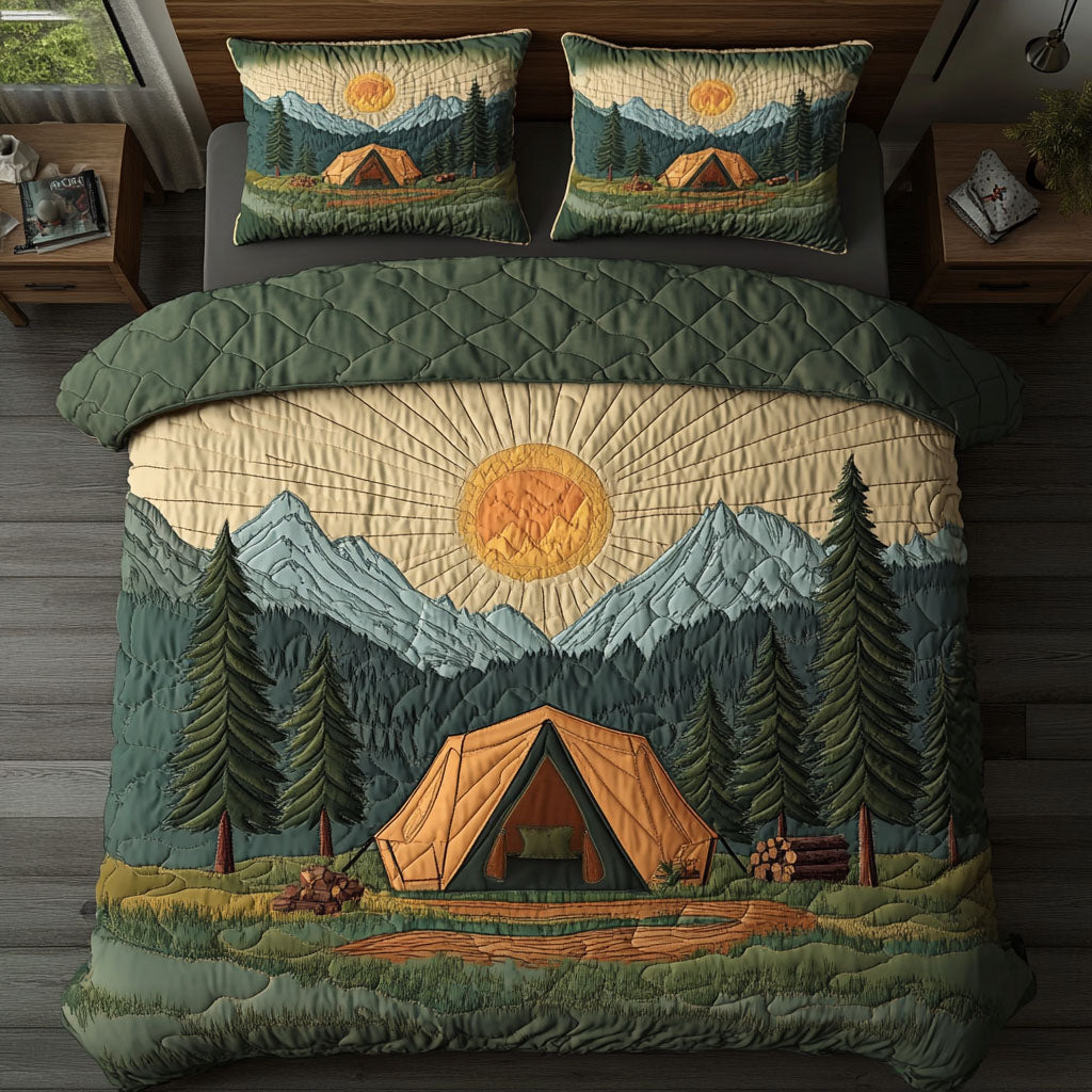 Serene Campfire Quilted Bedding Set Best Comforter Sets Camping Christmas Gifts.