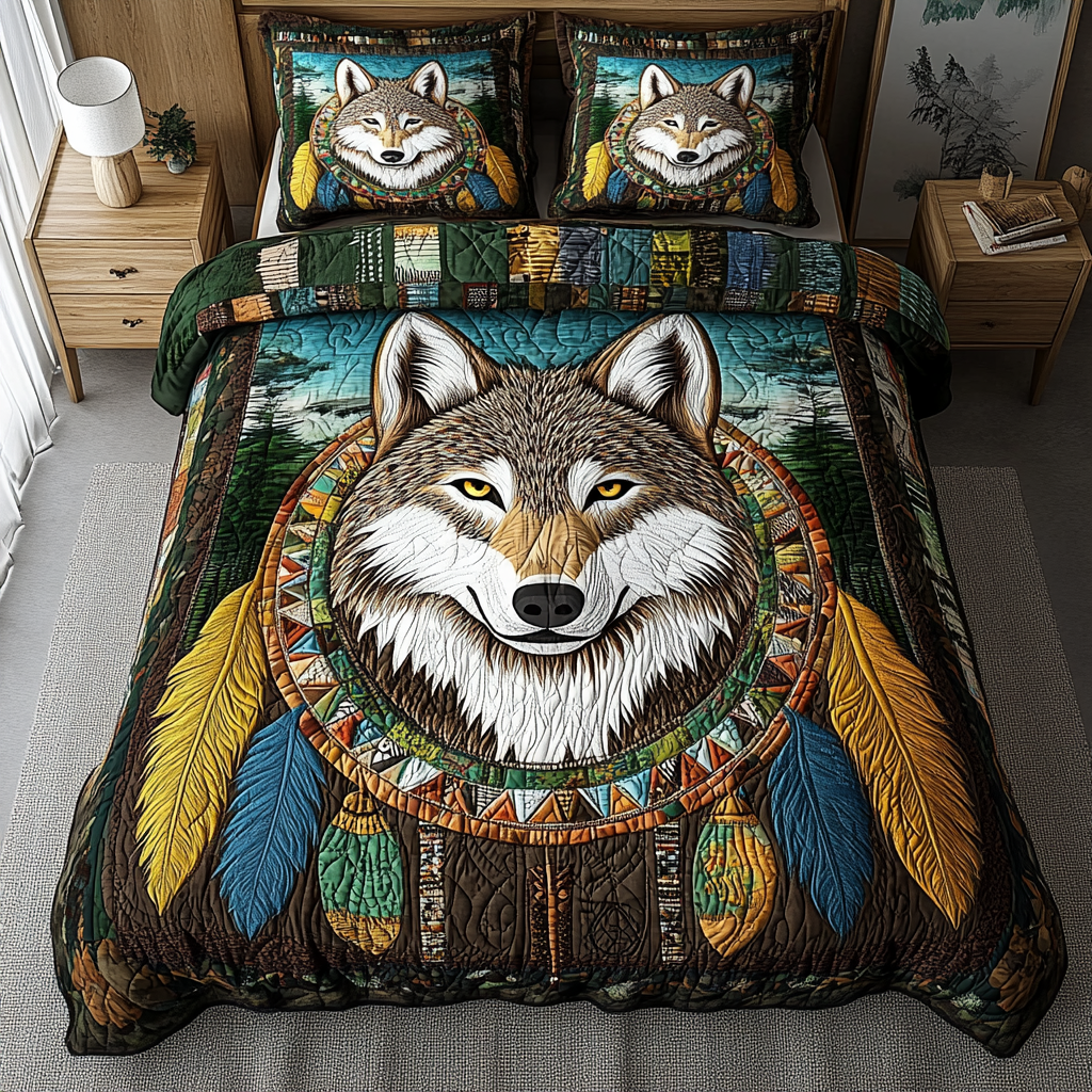 Shadow Fang Quilted Bedding Set Holiday Duvet Cover Set Gift For Wolf Lover.