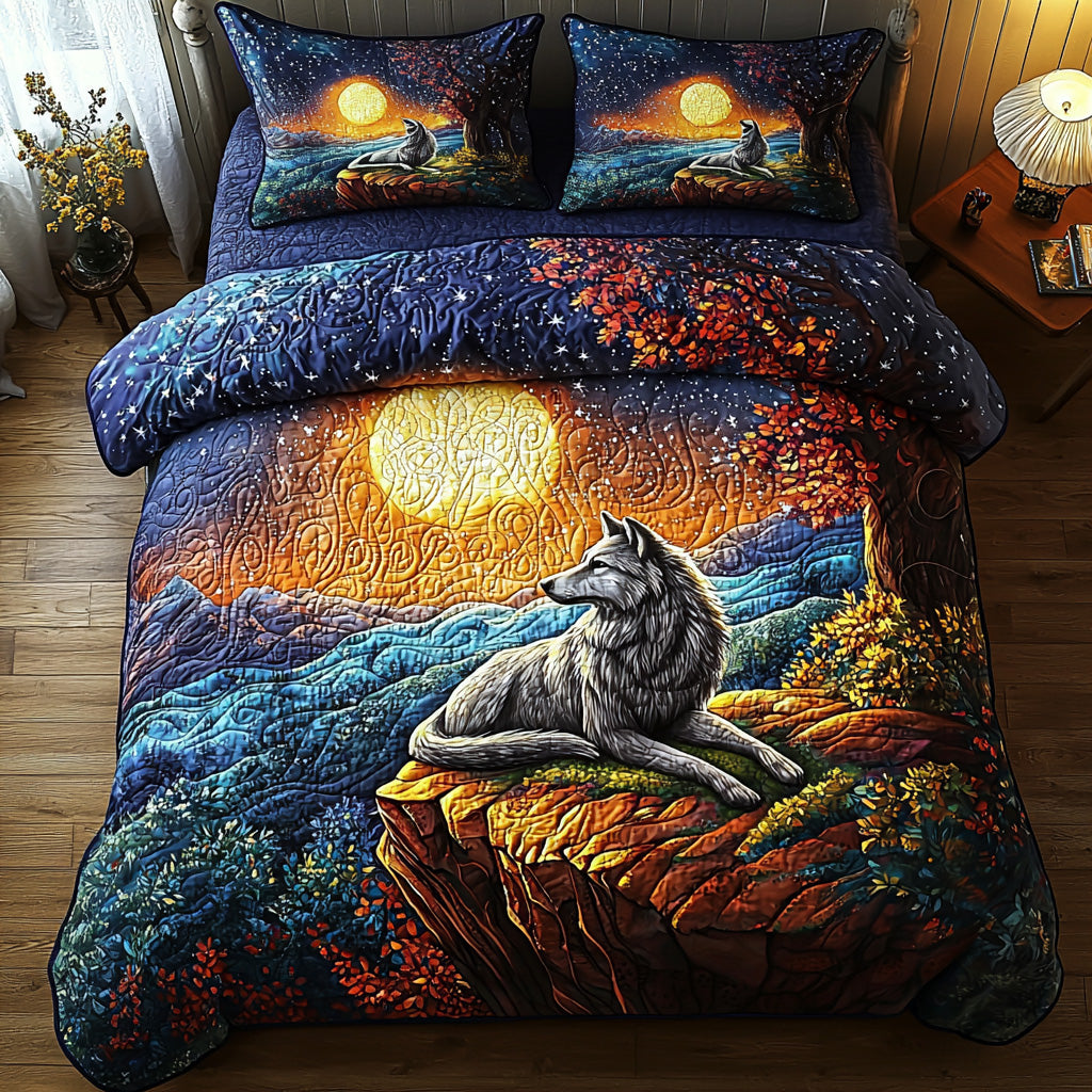 Snowy Run Quilted Bedding Set Duvet Cover Bed Sheet Set Presents For Wolf Lovers.