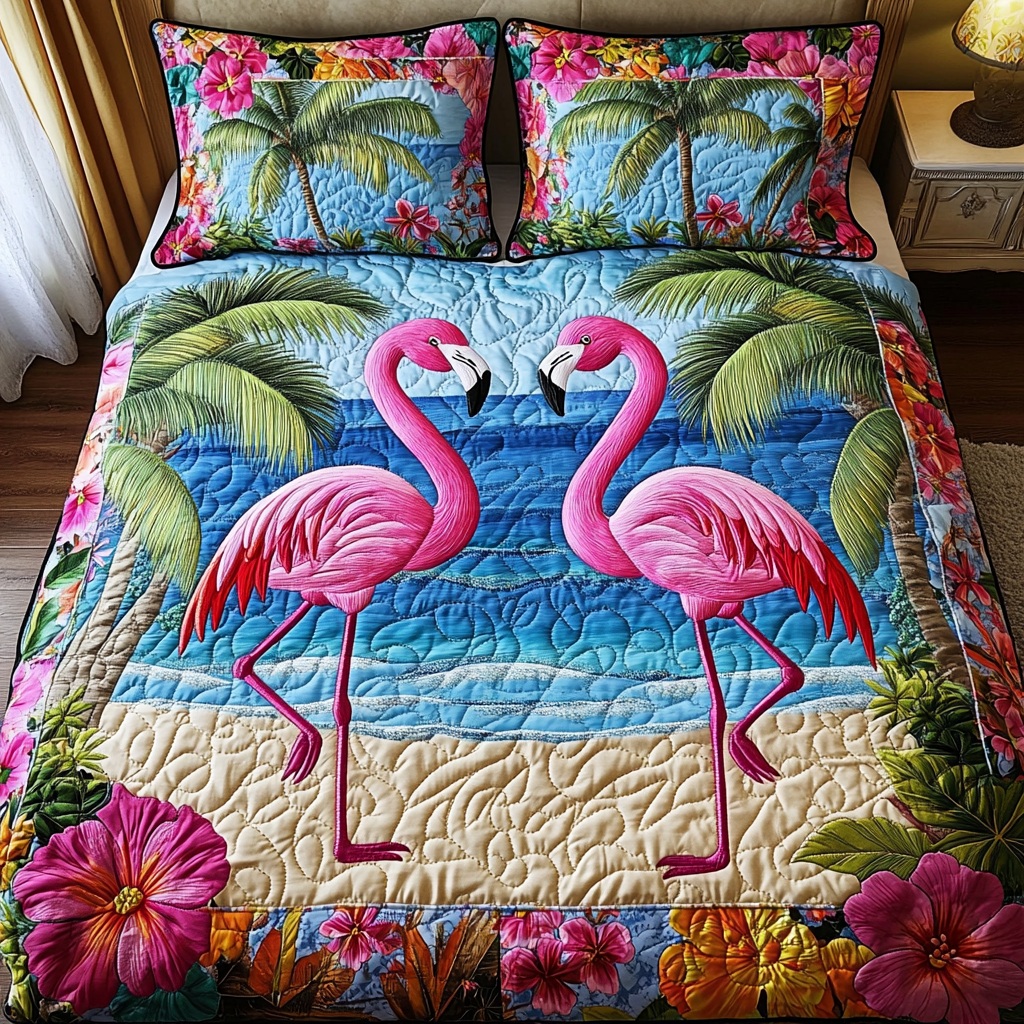 Summer Flamingo Quilted Bedding Set Aesthetic Room Decor Flamingo Teacher Gift.