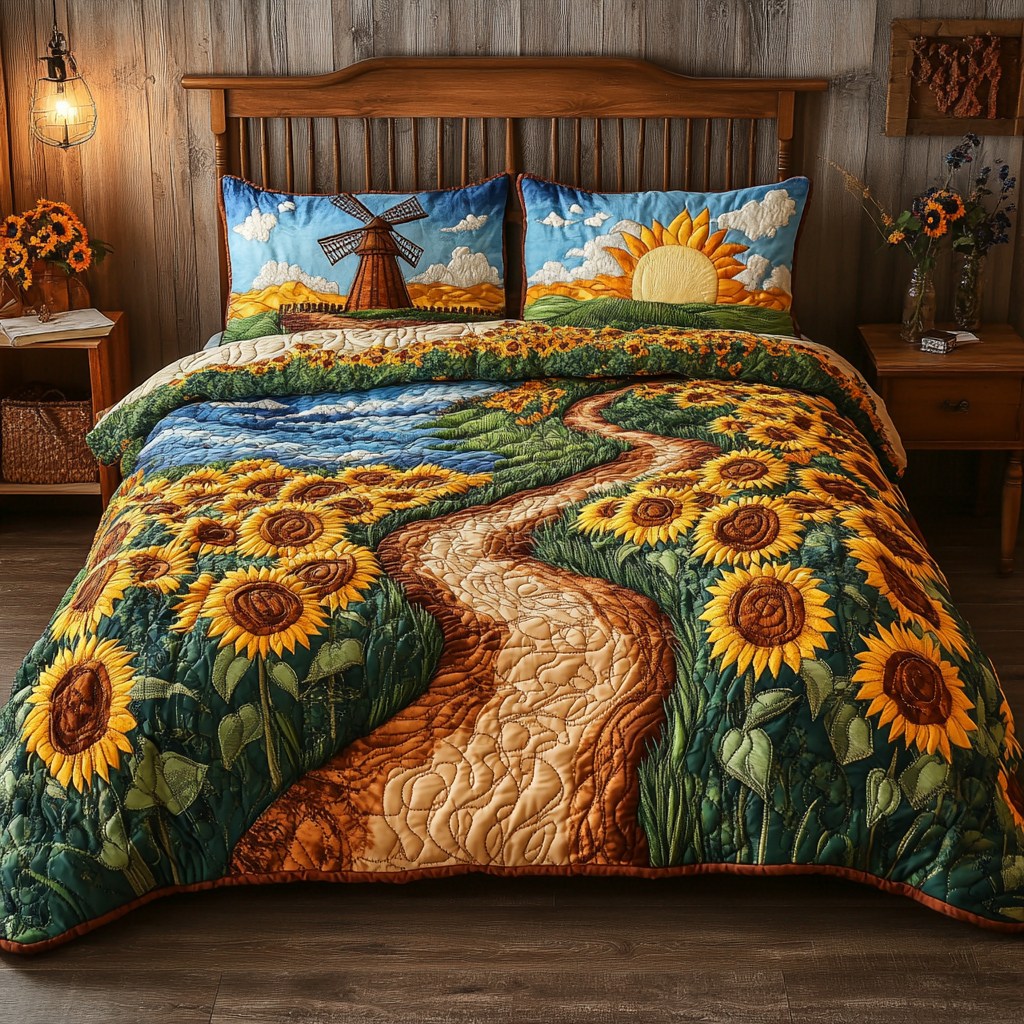 Sunny Fields Quilted Bedding Set Bed Decor Sunflower Birthday Gifts