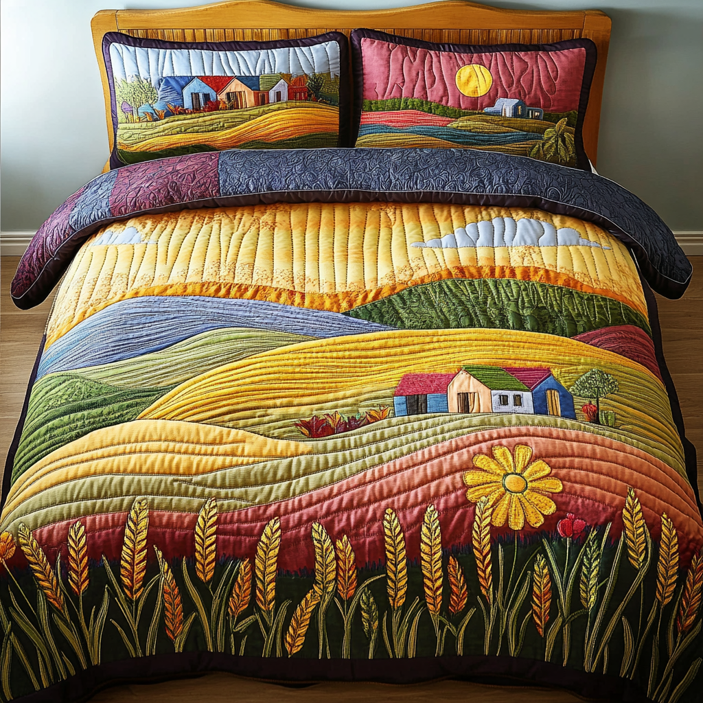 Sunrise Over The Hills Quilted Bedding Set Cute Farmhouse Bedroom Ideas Great Family Gifts.