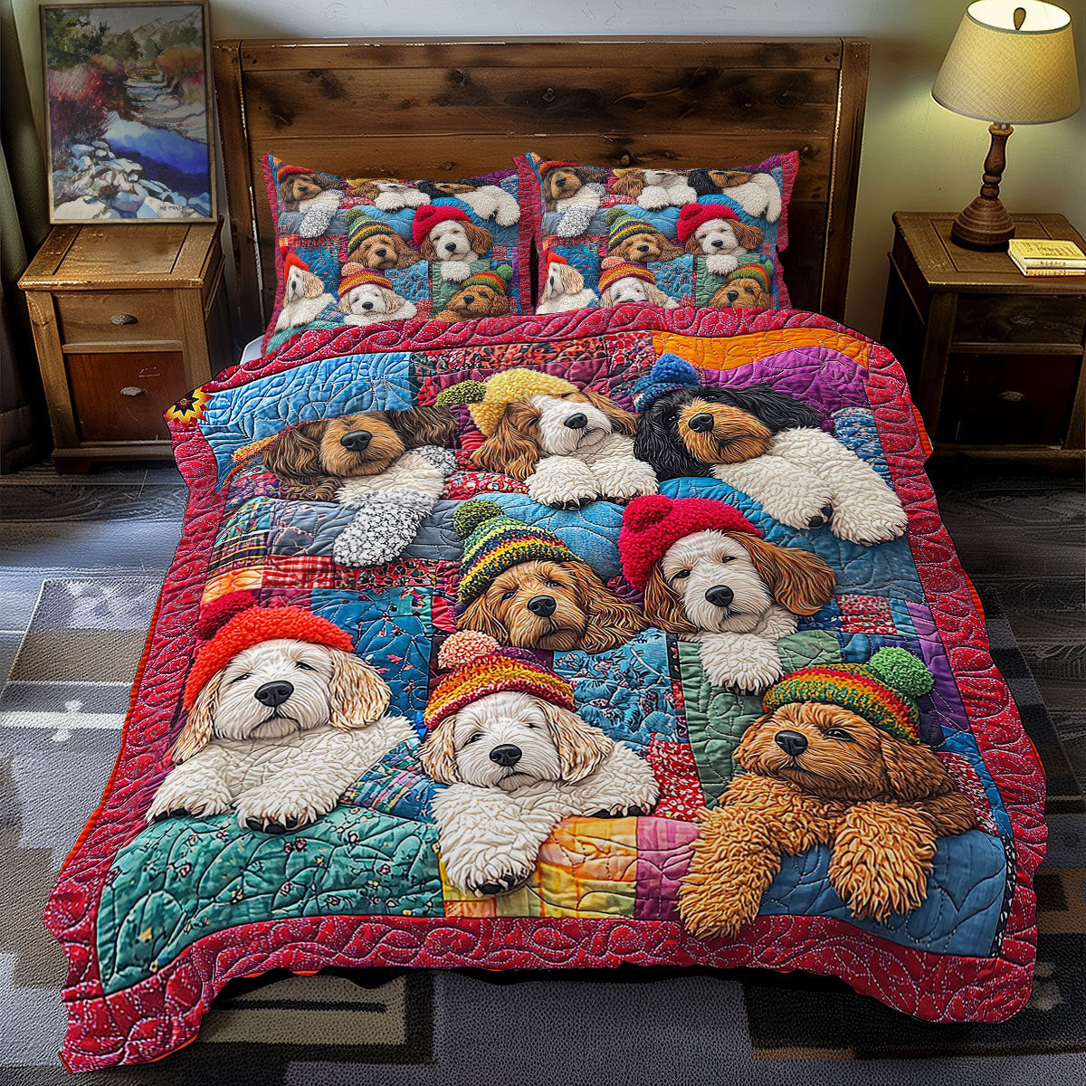Triple Gnome Holiday Xmas Quilted Bedding Set Romantic Christmas Gifts For Newlyweds