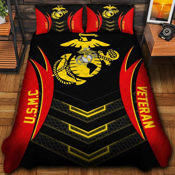 U.S.M.C Veteran Quilted Bedding Set Duvet Cover Bedspread Eagle Veteran Day Gifts For Family.