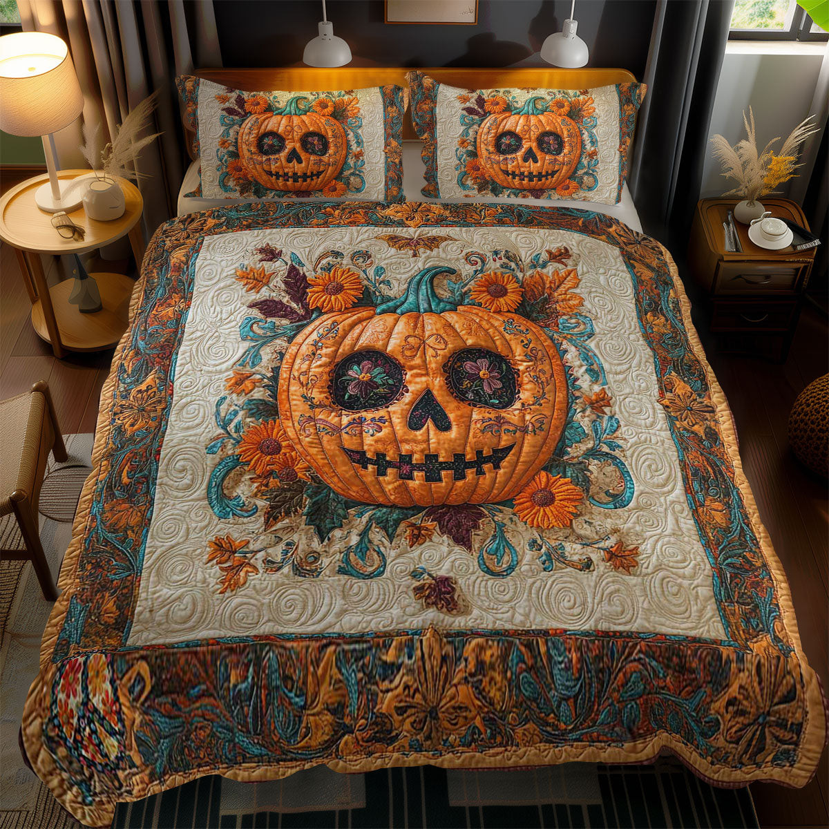 Whimsical Turkey Holiday Xmas Quilted Bedding Set Best Christmas Gifts For Women