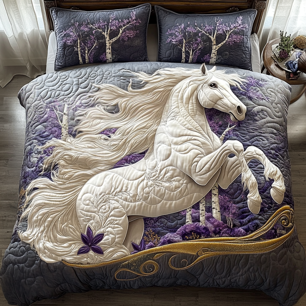 Wildflower Hooves Quilted Bedding Set Bed Decorations Horse Themed Gifts For Adults.