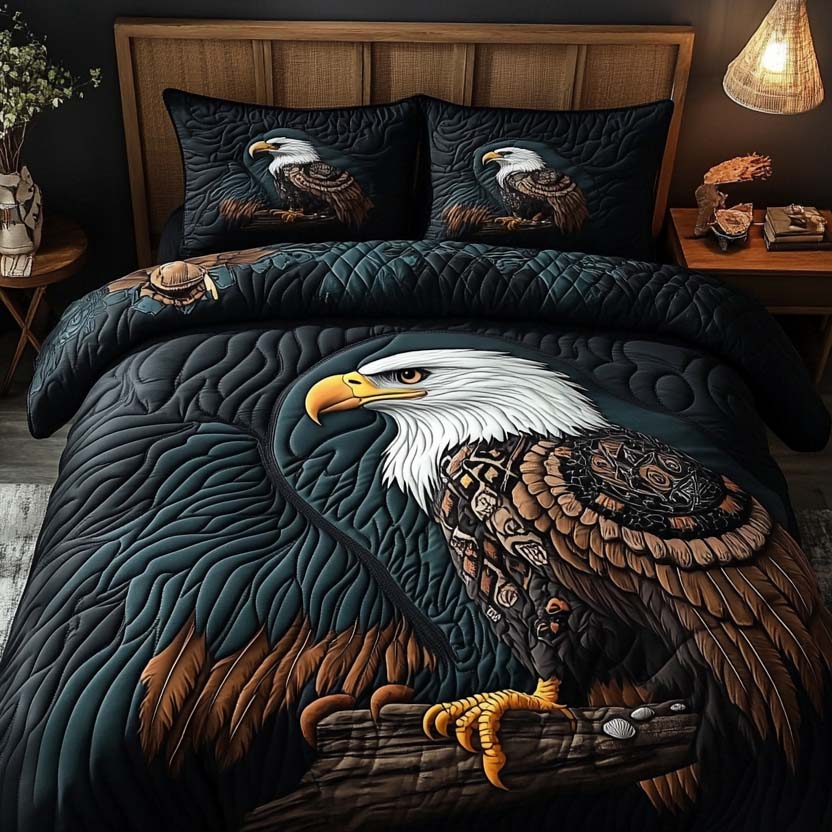 Wings of Freedom Quilted Bedding Set Holiday Duvet Cover Set Patriotic Eagle Gifts For Dad.