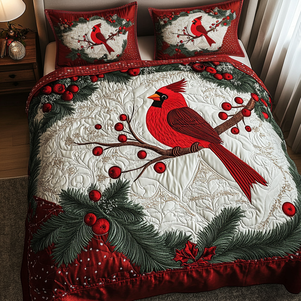 Winter Cardinal Quilted Bedding Set Best Christmas Duvet Cover Set Unique Cardinal Gift Ideas.