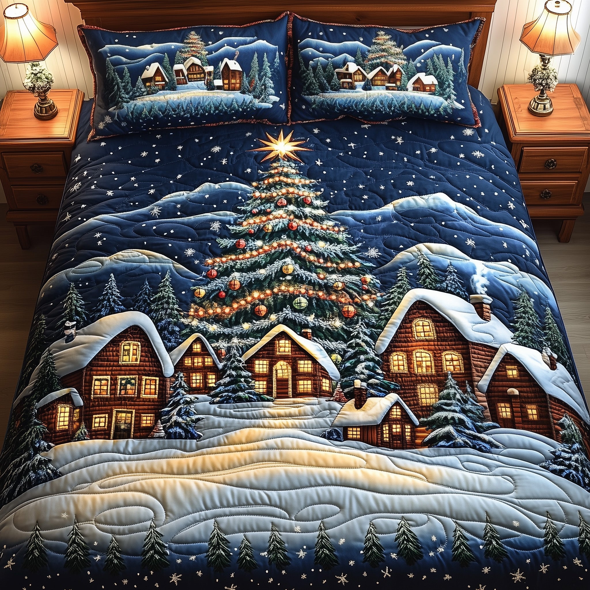 Winter Lighthouse Christmas Quilted Bedding Set Duvet Cover Bedspread Cozy Winter Xmas Gifts.