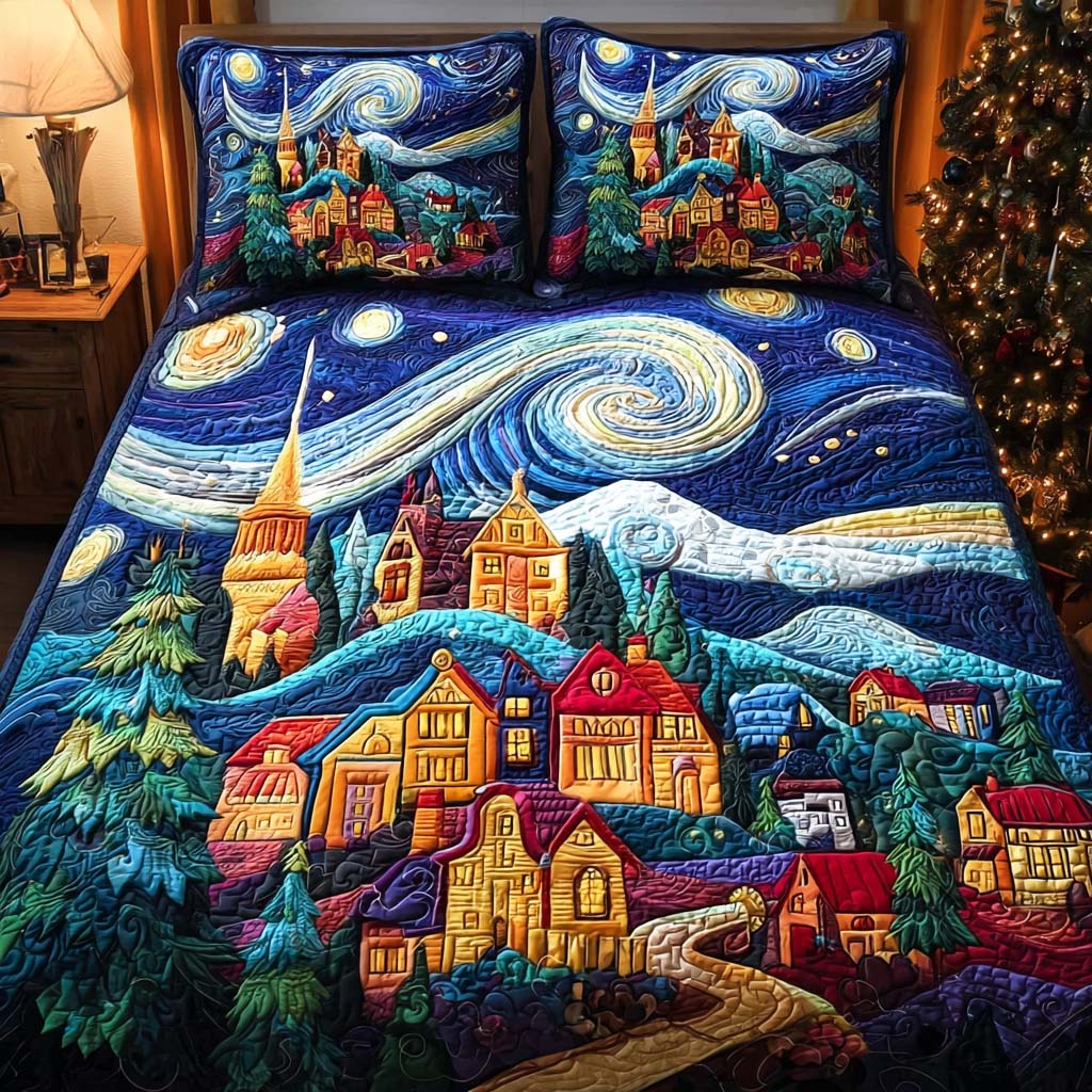 Winter Magic Town Quilted Bedding Set Twin Comforter Sets Christmas Inspired Gift For Children