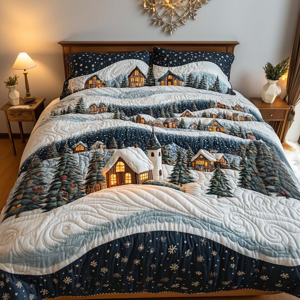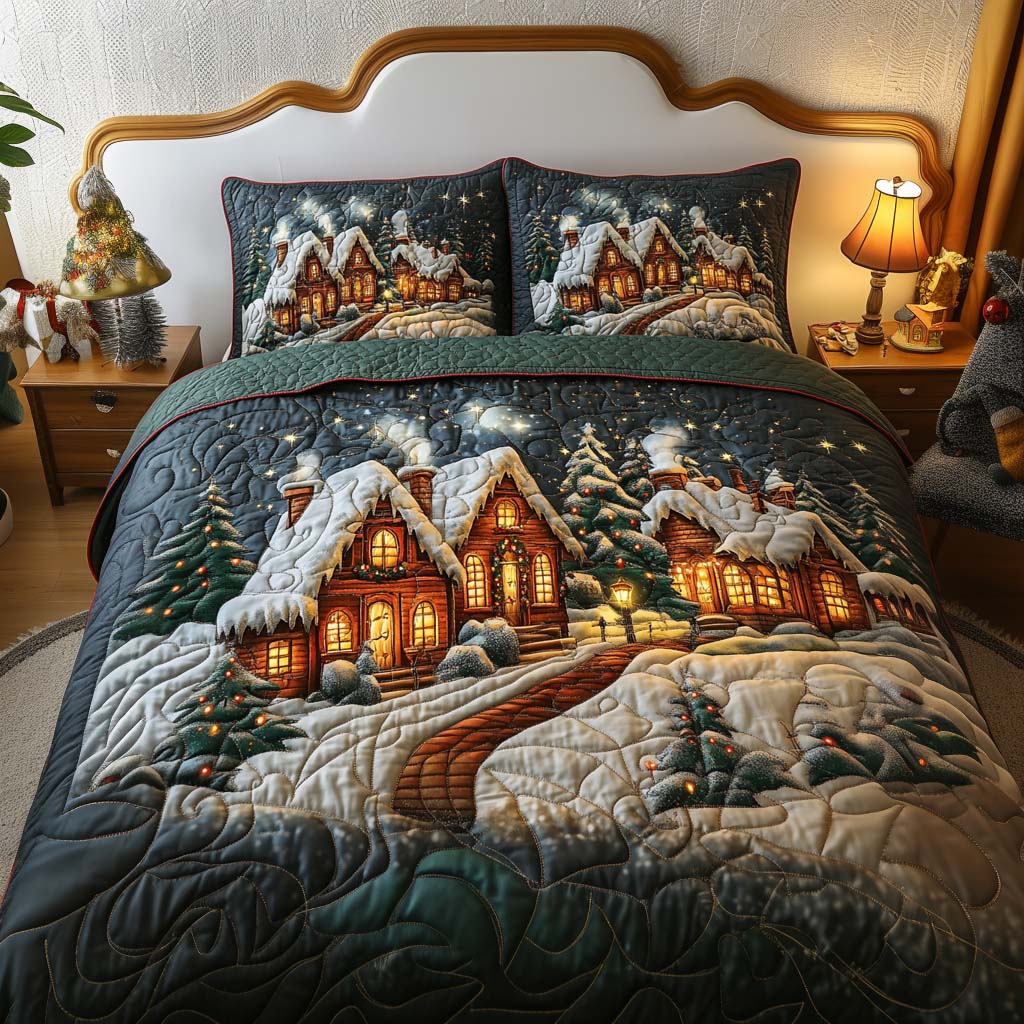 Winter Village Charm Quilted Bedding Set King Size Quilt Sets Festive Cheer Gift For Sister
