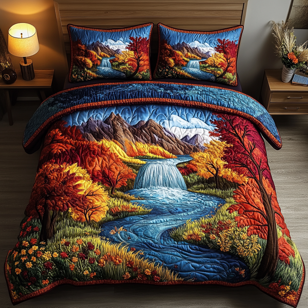 Woodland Glow Quilted Bedding Set Aesthetic Room Decor Autumn Presents